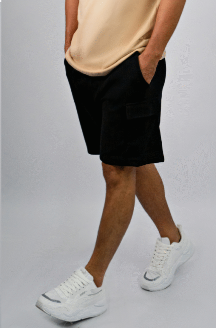 Bermuda Cargo Masculina em Malha Piquet Preta