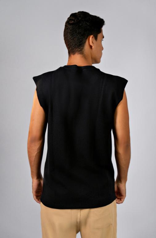 Regata masculina preta modelo Muscle Tee, feita em malha texturizada encorpada, com ombros amplos e caimento oversized.
